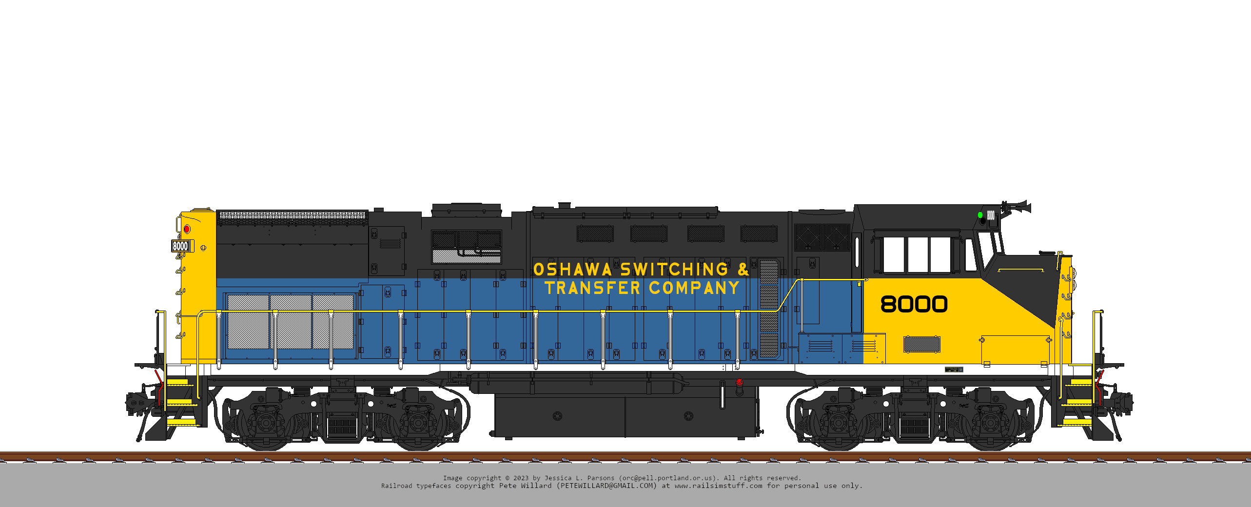 It operates using three RS-38bs (leased from the Joint Locomotive Pool) which are still painted in JLP colours (but lettered for the OS&TC.)