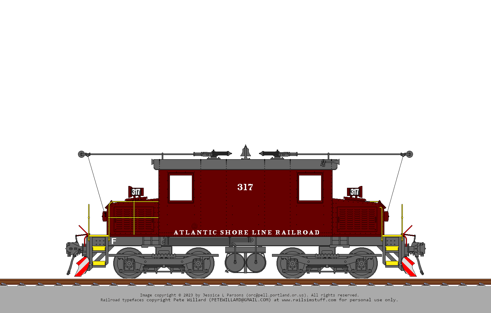 Fortuitously, the PV&T subsidiary South Loren Railway was being reelectrified to 3000VDC from 600VDC, and they had a handful of motors that were up for grabs. The PV&T arranged to sell – for $1 and stock – SLR #317 to the ASL, and after a quick stop at the PV&T’s Portland shops to add pilots & remove the third rail shoes, this new motor starting handling freight duties on the line.