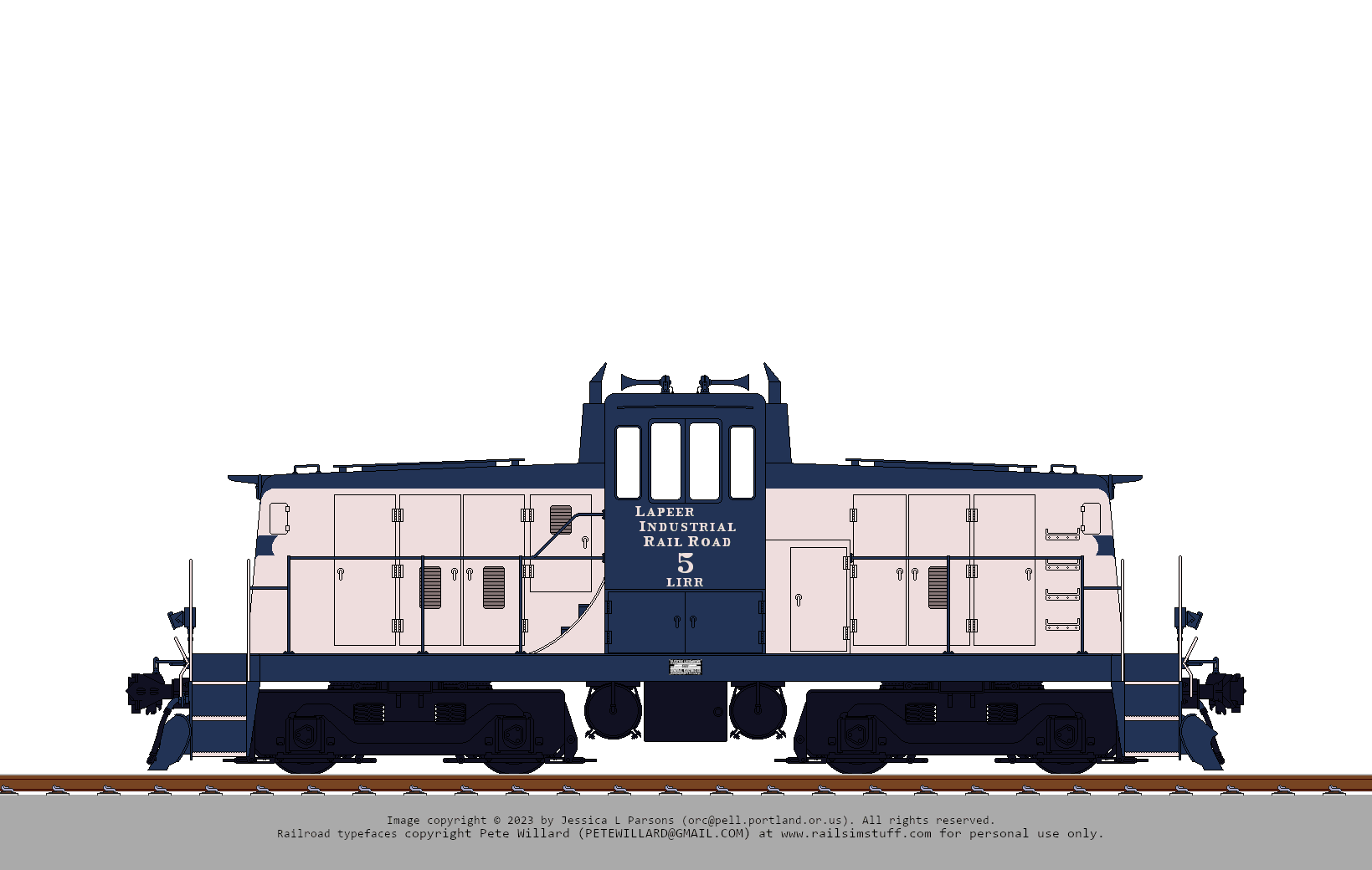 Lapeer Industrial Railroad GE 65 ton switcher #5 in blue & white paint